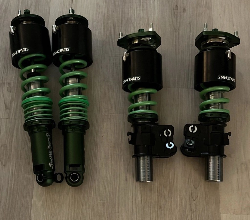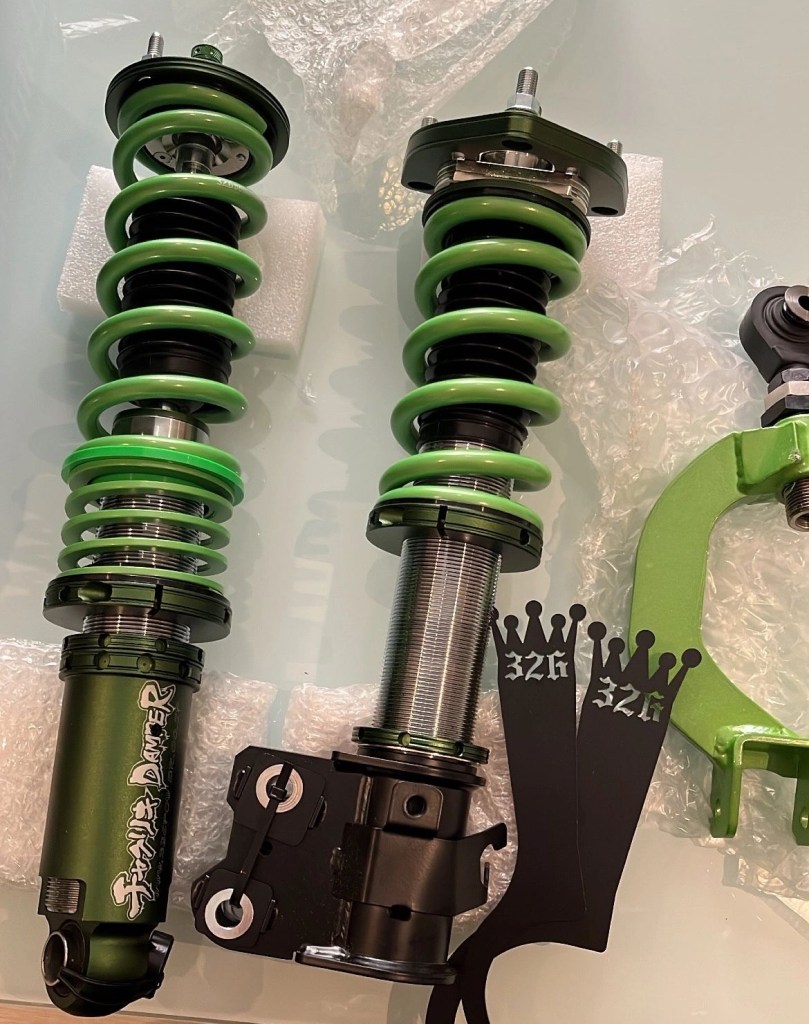 So I started figuring out what setup to go with, and I went with their low spec coilovers, using 12k swift springs at the front, and 7k swift spring+2k swift helper spring. Although 326 is famous for their wild colored coilovers; I wanted to keep it simple with their signature all green look.