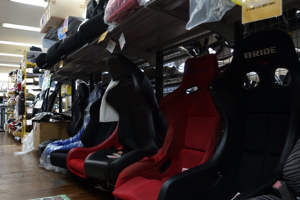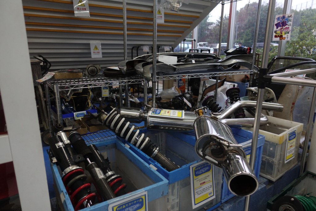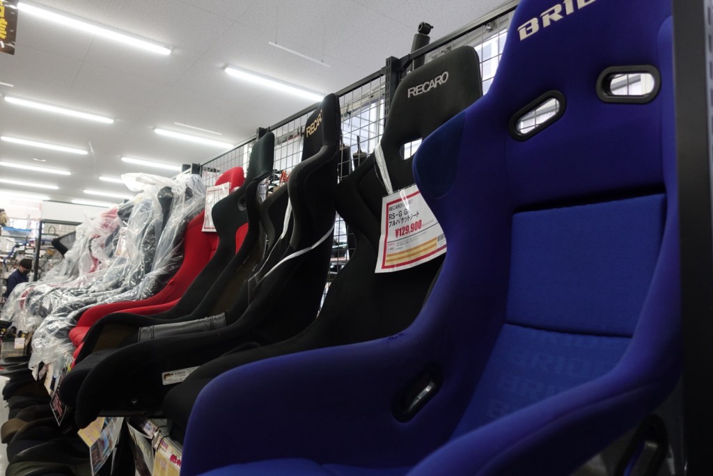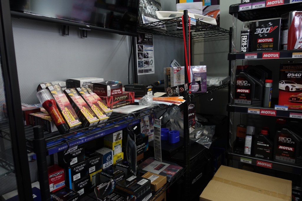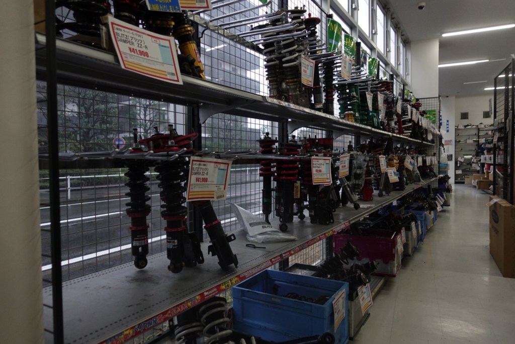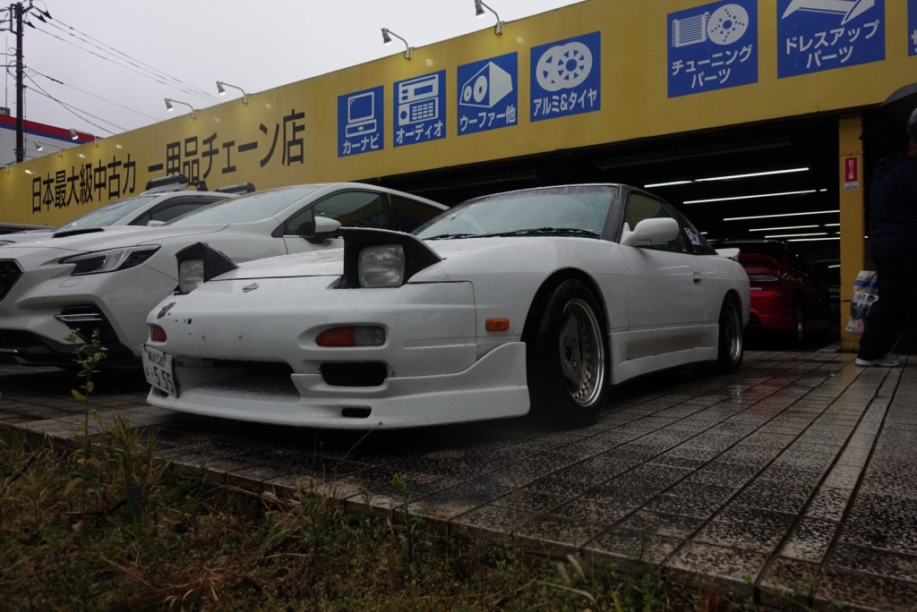 I picked out a few parts from the shelfs that I needed for my car back home, and headed to the checkout, before coming on the trip I made a small list of parts that I wanted to get while in Japan, consisting mostly of small parts that would be easy to carry and would save me a bit of money on shipping and could bring with me on the way back. I asked the clerk at the cashier if they had one of the parts I was looking for (a bride seat rail) and he asked what car it was for. I answered that it was for a 180sx and he was exited to hear that. And asked to see a photo of my car, he then told me that he owned one as well! Turns out he is the owner of the white 180 right outside!