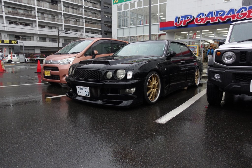 With time starting to run out we made our way to the last stop of the tour, we parked at a 7/11 Konbini to grab a snack, but the place Sakuma-San wanted to show me was what’s right next to the 7/11, it was the Sendai branch of the famous Grand Slam tuning shop, they used to be involved in some of the early 326power drift builds but are mostly building time attack cars nowadays, the shop was closed on that particular day unfortunately, I did however get a chance to see all the cool cars parked out side the shop, which were awesome to say the least.