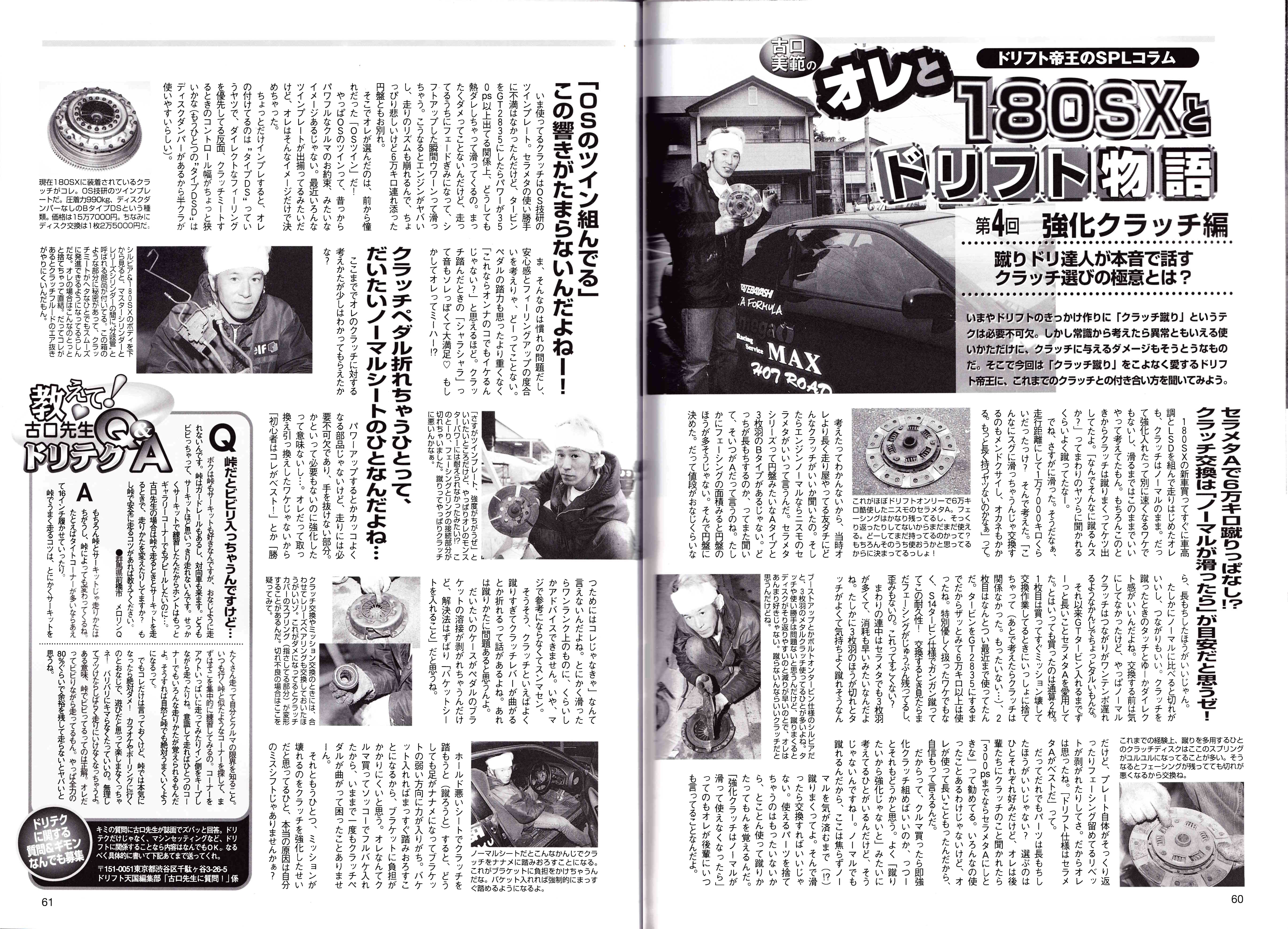 Dedicated to Yoshinori Koguchi, it usually covers Koguchi’s opinion on different topics with a Q&A section. This one discusses his clutch preferences, nothing super interesting that I feel noteworthy. But when I do come across something more interesting I’ll talk more about it. After all Koguchi is huge deal to a 180 enthusiast like me!