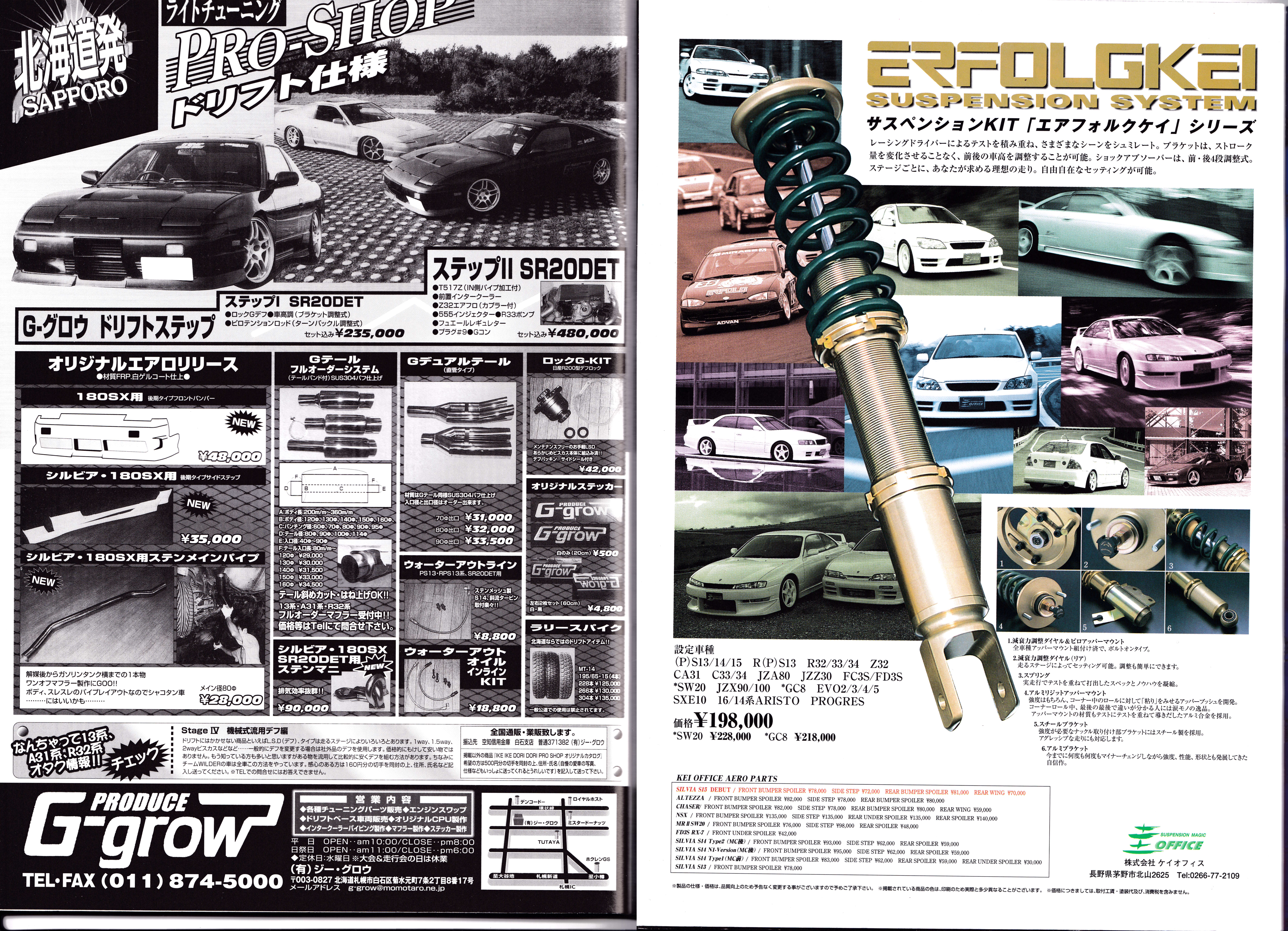 G-Grow, a Hokkaido based Tuning/aero shop. Were pretty much 180sx/S13 specialist only. One of the first shops to make OEM style Kouki aero in fiber glass, offering the oem style in a more cost effective way. Over time they’d make more versions of the aero pieces, which would have their own unique twist on the beloved oem kouki 180 aero style.